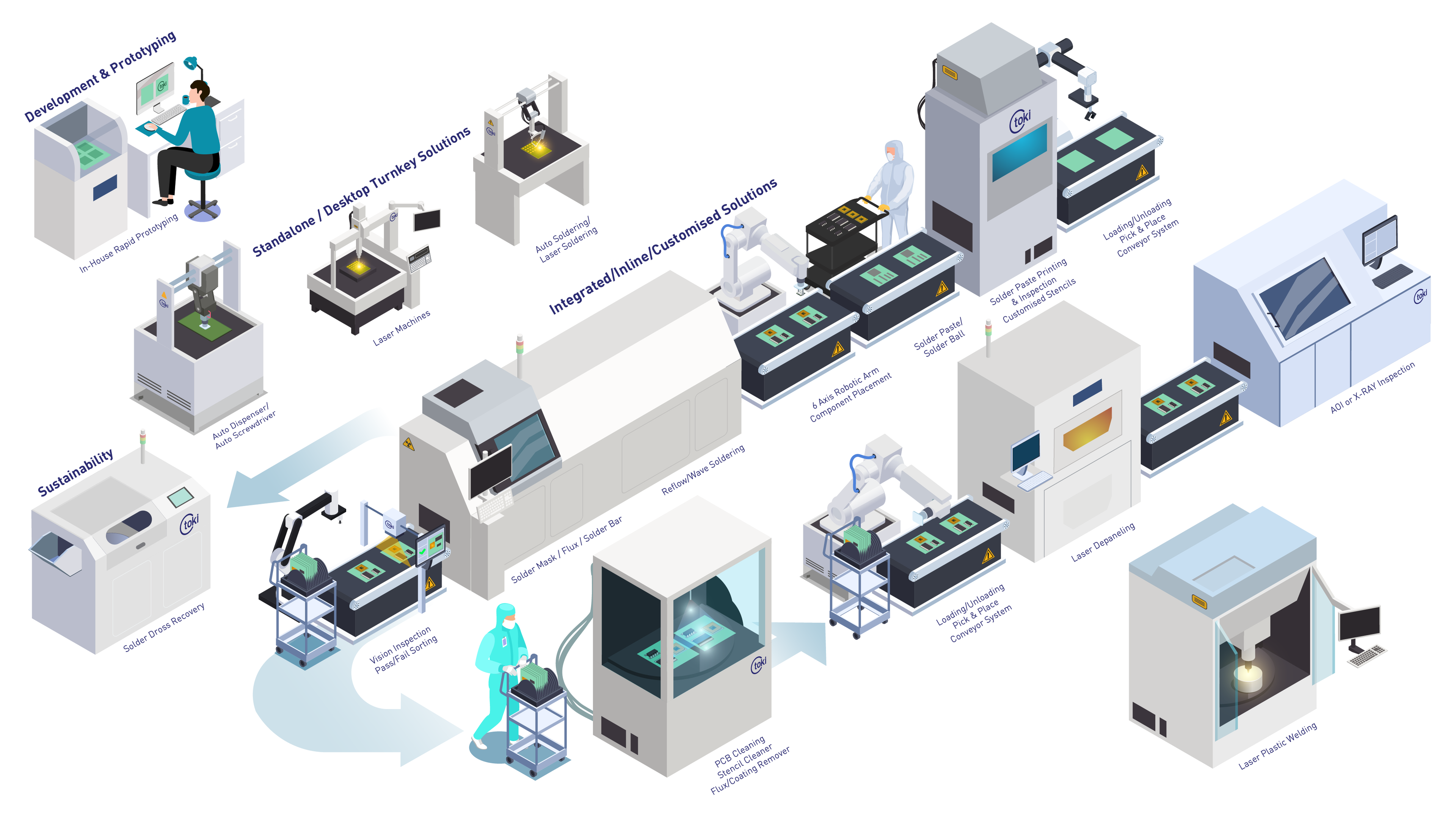 Get the best automated solutions with Tokimeku, with a vast offering of quality automated and turnkey solutions such as vision inspection systems, auto-screwdrivers and auto-dispensing machines that fits seamlessly into your manufacturing process and is ready to use upon implementation.
